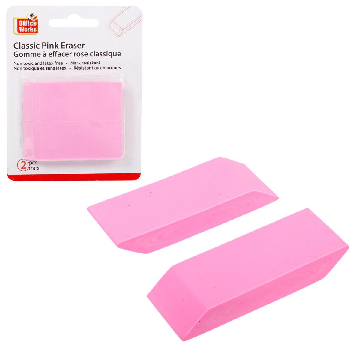Office Works 2 pc Pink Eraser Non Toxic & Latex Fr