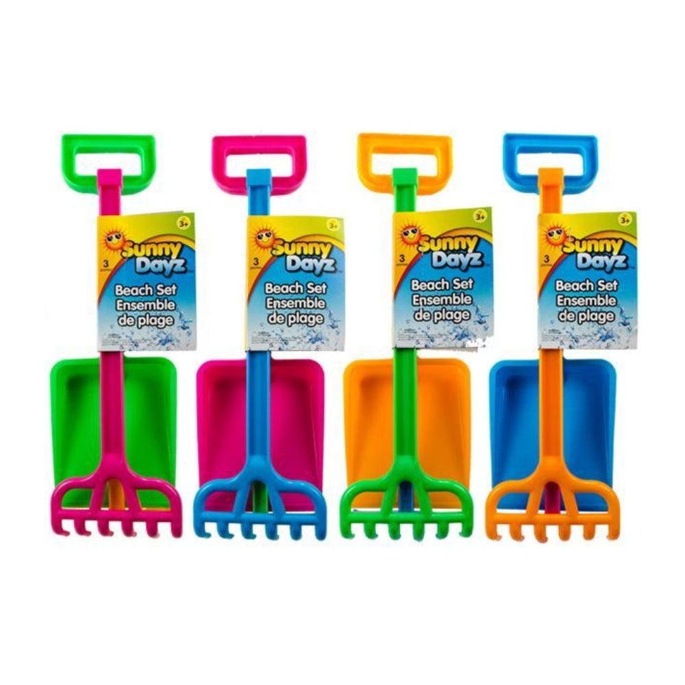 Sunny Dayz 3pc Neon Shovel,Rake & Hoe